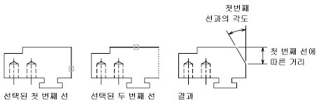 길이 및 각도를 지정하여 구석을 모따기하려면(AutoCAD Mechanical Toolset)