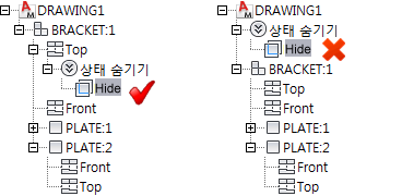 Mechanical 구조 사용 도면에서는 Mechanical 구조의 숨기기 상태 위치가 중요합니다.