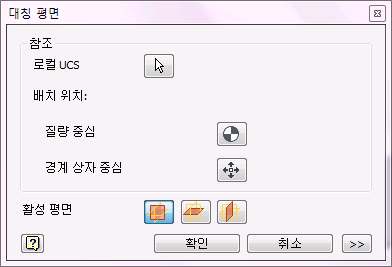 - UCS 및 대칭 평면을 부품의 질량 중심에 배치하려면 질량 중심 버튼을 클릭합니다.