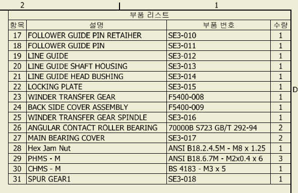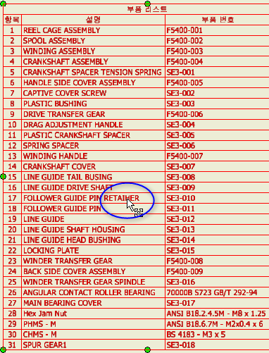 부품 리스트, 구멍, 리비전 또는 일반 테이블을 분할하고 분할한 단면을 새 위치 또는 시트로 이동할 수 있습니다.
