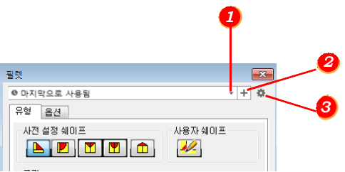 사전 설정을 사용하여 피쳐를 작성하면 해당 유형의 피쳐를 작성하는 다음번에 가장 최근에 사용한 사전 설정으로 특성 패널이 채워집니다. 기존 피쳐를 편집할 때 해당 피쳐를 작성하는 데 사용된 값이 특성 패널에 로드되며 사전 설정 이름은 사전 설정 없음입니다.