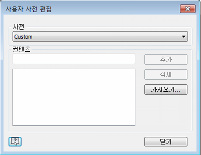 - 사전에서 활성 사용자 사전으로 단어를 가져오려면: 가져오기를 클릭한 후 추가하려는 단어가 있는 사용자 사전(.cus) 파일의 위치를 찾습니다. 열기를 클릭하여 단어를 가져옵니다.