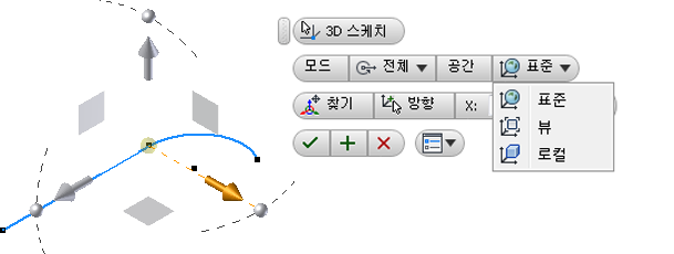 3D 스케치 도면요소 또는 고정 작업점의 위치를 조정합니다.