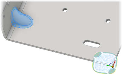 다음 이미지에서는 자동 면 체인 및 원점에 배치가 둘 다 꺼져 있으며 판금 부품에서 강화 보강판이 선택되어 있습니다.