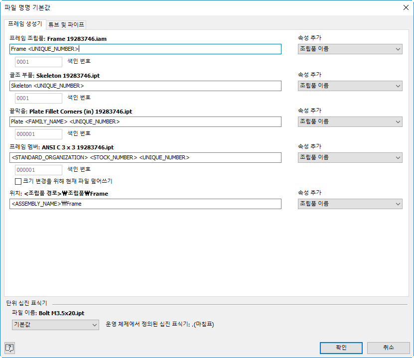 값 상자 옆에 경고 아이콘이 표시되면 잠재적인 문제가 있는지 메시지 툴팁과 명명 규칙을 확인합니다. 예를 들어, 고유한 번호 대신 색인 번호를 사용하면 중복된 파일 이름이 생성될 수 있습니다.