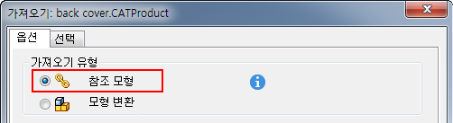 위에서 설명한 모형 변환 옵션과 마찬가지로 이러한 파일 형식에 대한 가져오기 작업에서는 원래 파일과의 연관성이 유지되지 않습니다. 이러한 파일 형식에는 추가 가져오기 옵션을 사용할 수 있습니다.