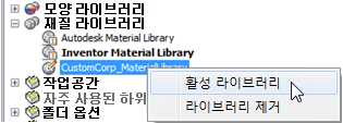 - 추가된 라이브러리를 처음 검색되거나 참조되는 활성 라이브러리로 만들려면 라이브러리 노드를 마우스 오른쪽 버튼으로 클릭하고 활성 라이브러리를 클릭합니다.