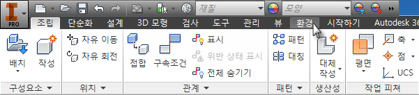 - 부품 파일의 리본에서 환경 탭을 클릭합니다.