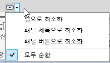 - 현재 탭에서 그 아래 있는 패널로 명령을 이동하려면 마우스 오른쪽 버튼으로 클릭하고 확장된 패널로 이동을 선택합니다. 원위치로 다시 이동하려면 패널을 확장하고 마우스 오른쪽 버튼으로 명령을 클릭한 다음 주 패널로 이동을 선택합니다.
