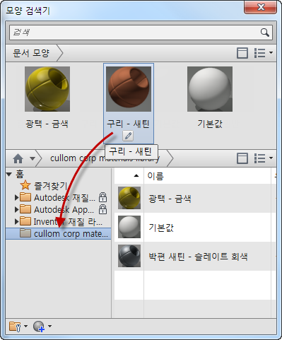 - 저장을 클릭합니다. 모양 검색기의 아래쪽 섹션에 있는 라이브러리 리스트에 라이브러리가 표시됩니다.