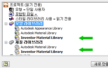- My_ InventorMaterialLibrary.adsklib를 찾아서 선택합니다.