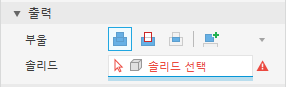 부품 파일에 다중 본체가 있는 경우 출력 섹션에서 솔리드 선택자를 클릭하여 하나 이상의 포함 본체를 선택합니다.