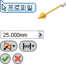 미니 도구막대 맨 위에 있는 값 입력 상자는 모델링 및 편집 작업에 대한 숫자 값을 지정합니다.