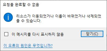 404, 410 | 1) 닫기 버튼을 클릭합니다. 2) 파일의 폴더 위치를 새로 고칩니다. 3) 파일에 다시 액세스해봅니다.