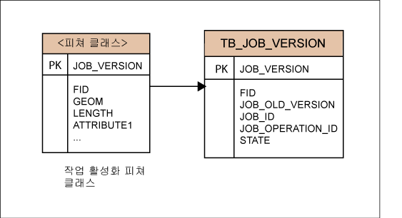 TB_JOB_VERSION 테이블에는 모든 피쳐의 전체 내역이 저장됩니다. 이 피쳐 테이블에는 작업 관련 속성인 JOB_VERSION이 하나 있습니다. TB_JOB_VERSION 테이블에서는 표시할 피쳐도 제어합니다.