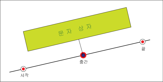 정렬 특성의 경우 문자 상자를 기준으로 문자 상자 삽입점(원점)의 위치를 지정할 수 있습니다. 이 값은 화면표시 관리자 스타일 지정에도 사용됩니다.