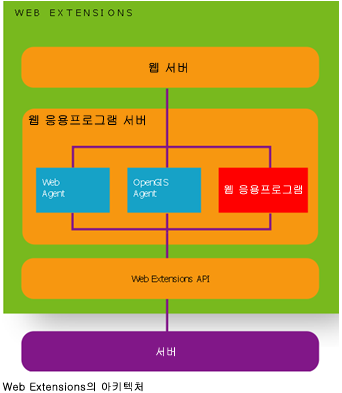 Autodesk Infrastructure Web Server Extension은 웹 서버 확장 API를 통해 액세스할 수 있는 내부 구성요소입니다. 또한 http://servername:port/mapserver2012/mapagent/index.html에서 액세스할 수 있는 양식 기반 인터페이스도 있습니다. Web Server Extension은 Infrastructure Map Server에서 제공된 서비스를 HTTP 프로토콜을 사용하여 인터넷 또는 인트라넷을 통해 클라이언트 응용프로그램에 표시합니다.