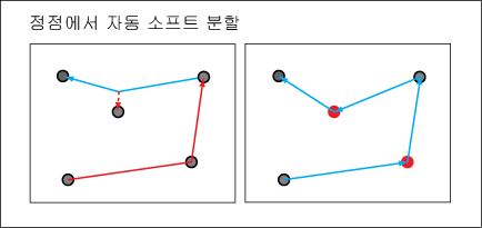 정점에서 유틸리티 점을 검색하여 유틸리지 점이 발견될 경우 선을 소프트 분할합니다. |