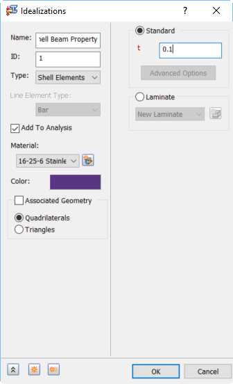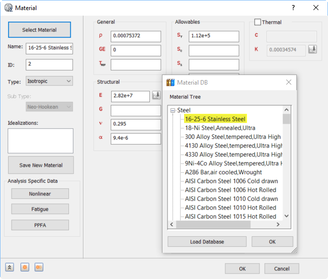 - Steel 범주에서 16-25-6 Stainless Steel을 선택합니다. 재질 대화상자의 구조 영역에서 G 필드가 비어 있는지 확인합니다.