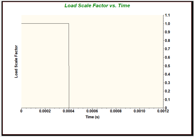 빔은 하나의 모서리에서 단기 충격 하중의 영향을 받습니다. 이상적인 충격 힘은 수치적으로 생성할 수 없지만 불연속 기간에 적용해야 하므로 테이블을 정의하여 펄스 함수를 작성해야 합니다.