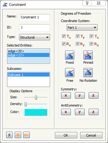 - 구속조건 대화상자에서 모든 기본값을 그대로 둡니다.
