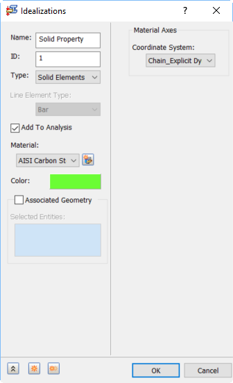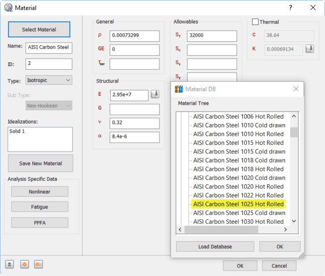 - 강철 범주에서 AISI 탄소강 1025 열간 압연을 선택합니다. 재질 대화상자의 구조 영역에서 G 필드가 비어 있는지 확인합니다.