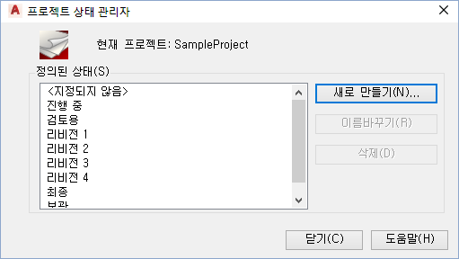 현재 프로젝트에 대해 정의된 상태를 나열합니다. 이 대화상자의 이 리스트에서 상태를 추가하거나, 이름을 바꾸거나, 제거할 수 있습니다. 기본 상태 리스트에는 다음이 포함됩니다.