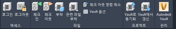 Vault 로그인 세션 및 Vault 프로젝트 파일을 리본에서 관리할 수 있습니다.