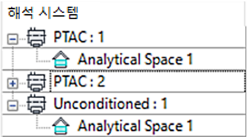 비공조 유형 및 PTAC 유형의 구역 장비에는 해석 공간 1이라는 공간이 있으며, 이는 유효하지 않습니다.