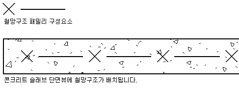 다음 이미지에서는 구획도의 콘크리트 슬래브에 용접철구조 패밀리를 추가하는 것을 보여줍니다.