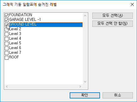 3. 해당 레벨 이름 옆의 확인란을 클릭하여 숨길 레벨을 선택합니다.