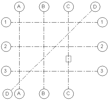 그리드를 벗어난 기둥은 그리드 교차점에서 벗어났기 때문에 일반적인 영숫자 플롯을 통해 정렬되지 않습니다. Revit에서는 가까운 그리드 기둥에 대한 간격띄우기를 계산 및 표시하여 이를 보충합니다. 양수 및 음수 기호는 교차에 상대적인 기둥 위치와 이와 연결되는 그리드 선의 유형을 기준으로 결정됩니다.