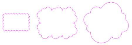 호 길이 값은 프로젝트에 있는 모든 기존 및 새 구름형 수정기호 주석의 호 길이를 제어합니다. 이 값은 구름형 수정기호 주석을 그리는 데 사용되는 2호 세그먼트의 최소 호 길이를 설정합니다. 다음 이미지에서는 호 길이 값을 높이면 구름 모양에서 호 크기가 증가합니다.
