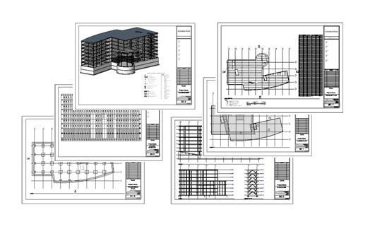 시방서 세트(도면 세트 또는 시트 세트라고도 함)는 여러 시트로 구성됩니다. 각 시트에는 건물 설계를 위한 하나 이상의 도면과 일람표가 포함되어 있습니다.