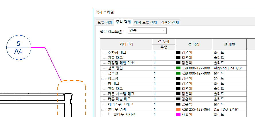 - 주석 객체 탭을 클릭합니다.