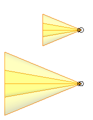 이 매개변수는 렌더된 이미지에서 라이트에 영향을 주지 않습니다. ![]() 광원 기호 길이가 다른 스폿라이트(평면 뷰) |