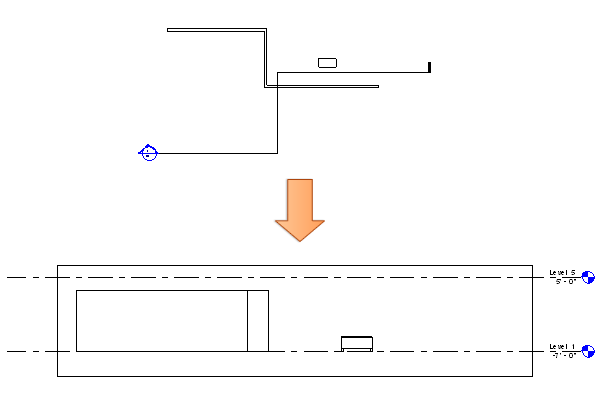 다음 예에서는 단면을 분할하는 예를 보여주지만 동일한 방법을 입면에도 사용할 수 있습니다. 다음 그림은 모델에 그린 일반적인 단면입니다.
