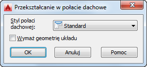 . W arkuszu Przekształcanie w połacie dachowe są wyświetlane style połaci dachowych używane w bieżącym rysunku.