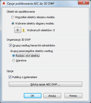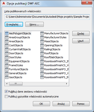 Ta procedura umożliwia utworzenie jednego pliku DWF lub DWFx opracowywanego modelu na podstawie danych zdefiniowanego przez użytkownika zestawu właściwości.