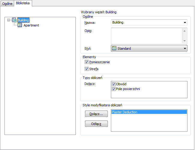 Uwaga: Domyślnie modyfikatory obliczeń są stosowane tylko do powierzchni bazowej i obwiedni bazowej pomieszczeń dołączonych do strefy. Aby zastosować modyfikator do obwiedni netto, powierzchni użytkowej i brutto, należy utworzyć i zastosować definicję zestawu właściwości zawierającą właściwości w postaci obliczonej powierzchni i obwodu tych 3 obwiedni.