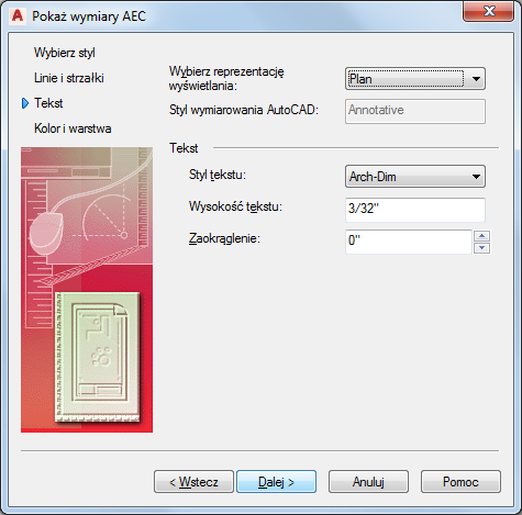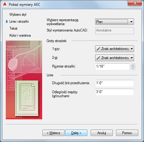 2. Wybierz przeznaczony do edycji styl wymiarowania AEC i kliknij Dalej.