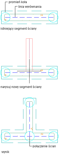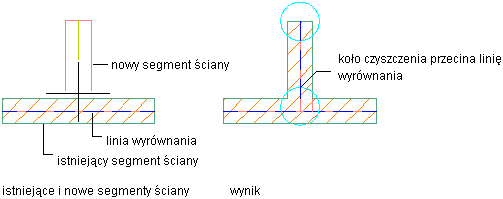 Linie wyrównywania ściany i łączenie ścian w miejscu przecięcia ścian