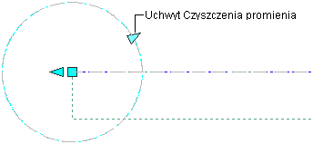 Linie wyrównywania i okręgi czyszczenia są wyświetlane na wszystkich ścianach na rysunku. Ponadto po wybraniu ściany na każdym okręgu czyszczenia wyświetlane są uchwyty promienia czyszczenia. Przesuń uchwyt, aby zwiększyć lub zmniejszyć promień okręgu czyszczenia.