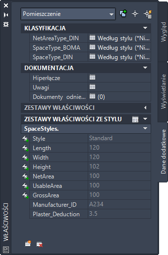 - Na palecie właściwości kliknij zakładkę Dane dodatkowe.