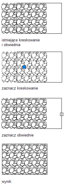 Procedura ta służy do ponownego zdefiniowania obwiedni zespolonych lub niezespolonych kreskowań w oparciu o dowolny wybrany szkic o zamkniętej obwiedni. W przypadkach, gdzie niezespolone kreskowanie wypełniało szkic o zamkniętej obwiedni, ale szkic został później rozciągnięty lub przesunięty, procedura ta umożliwia rozwinięcie lub zmianę położenia kreskowania, tak aby wypełniało obszar nowej obwiedni.