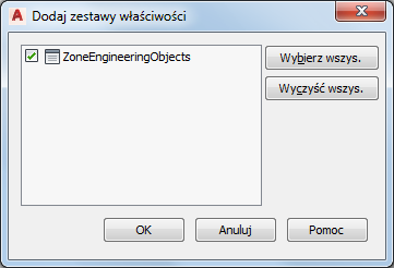 - W oknie dialogowym Dodaj zestawy właściwości wybierz zestaw ZoneEngineeringObjects i kliknij przycisk OK.