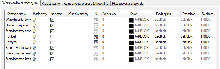 | na wysokości większej niż wartość parametru Wysokość płaszczyzny tnącej | obiekty będą wyświetlane z użyciem ustawień komponentu Powyżej płaszczyzny tnącej określonych na karcie Warstwa/kolor/rodzaj linii. |