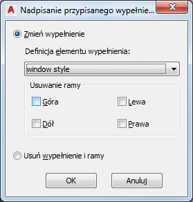Zamiana definicji wypełnienia będzie możliwa pod warunkiem, że w momencie rozpoczynania operacji nowa definicja jest już skonfigurowana w stylu ściany kurtynowej.