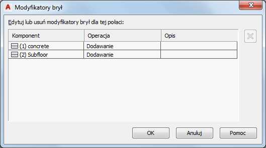 | zmień operację użytą do zastosowania modyfikatora bryły do komponentu stropu lub połaci dachowej, |