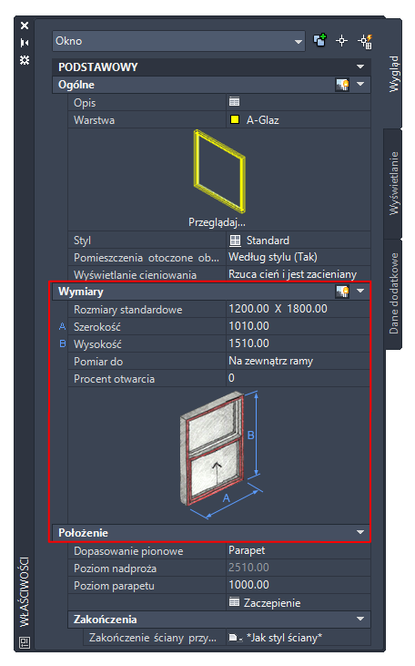 Poniżej opisano procedurę zmiany sposobu pomiaru szerokości okna lub okien.